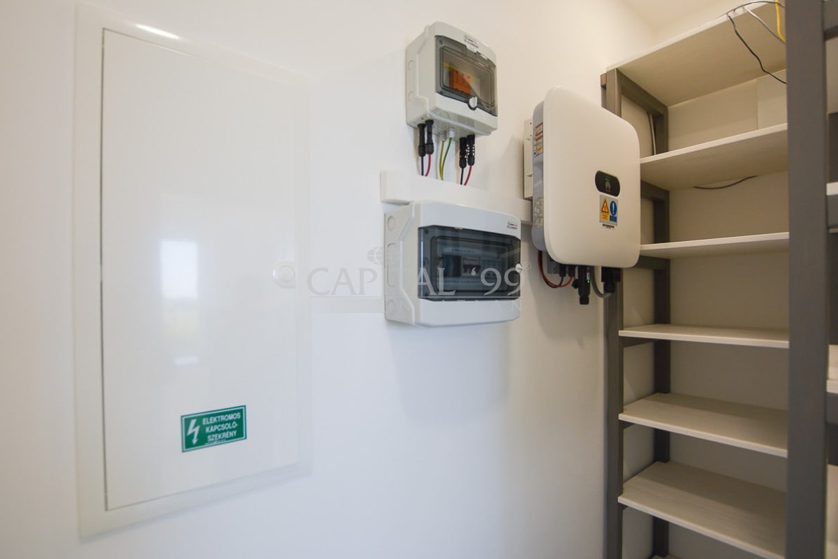 • Áram, vezetékes víz, szennyvízcsatorna, kaputelefon, klíma, riasztó, kamera, internet, tévéantenna be van kötve.
