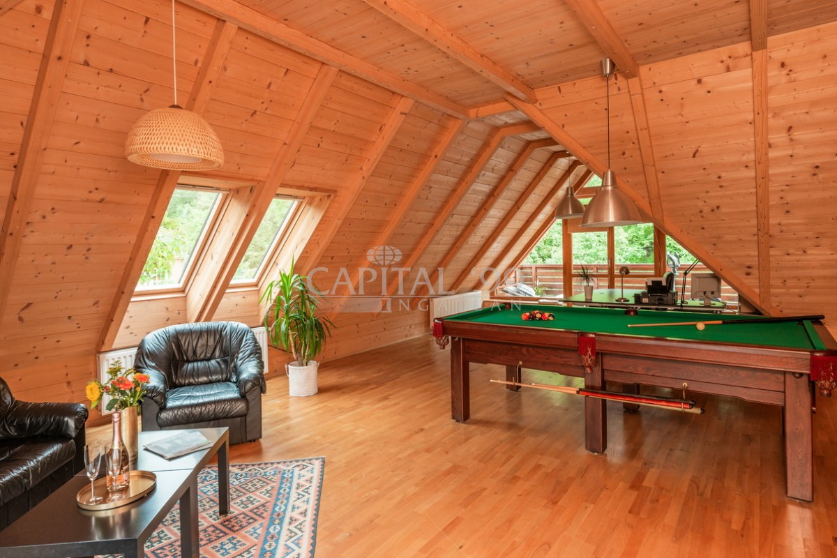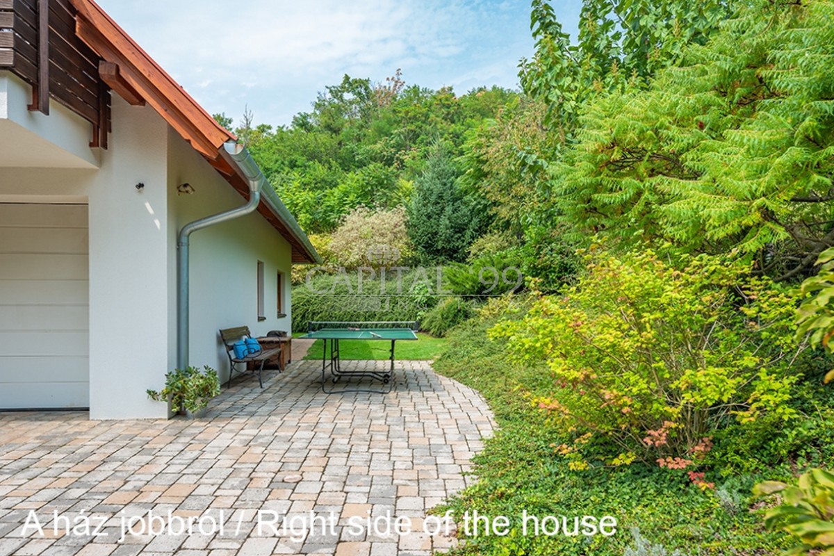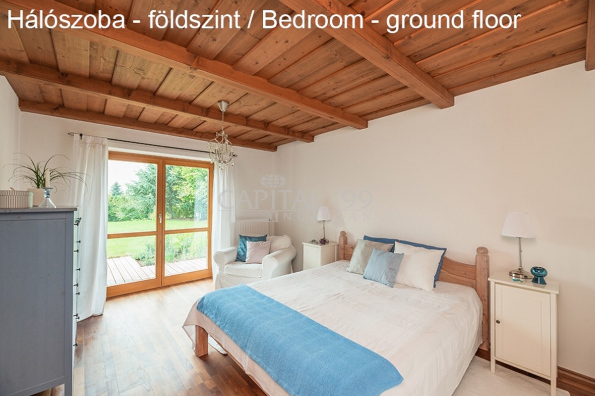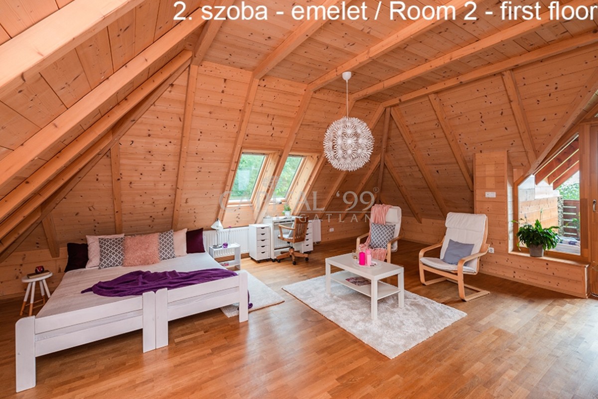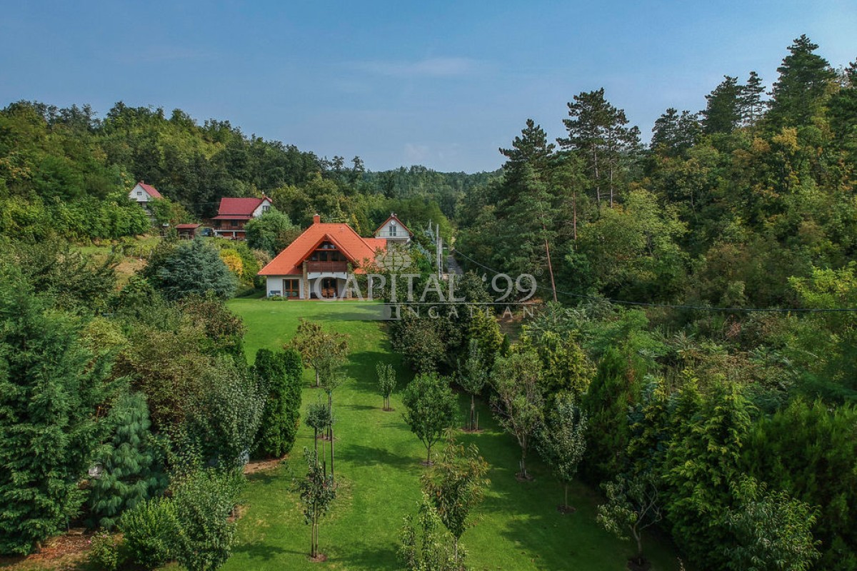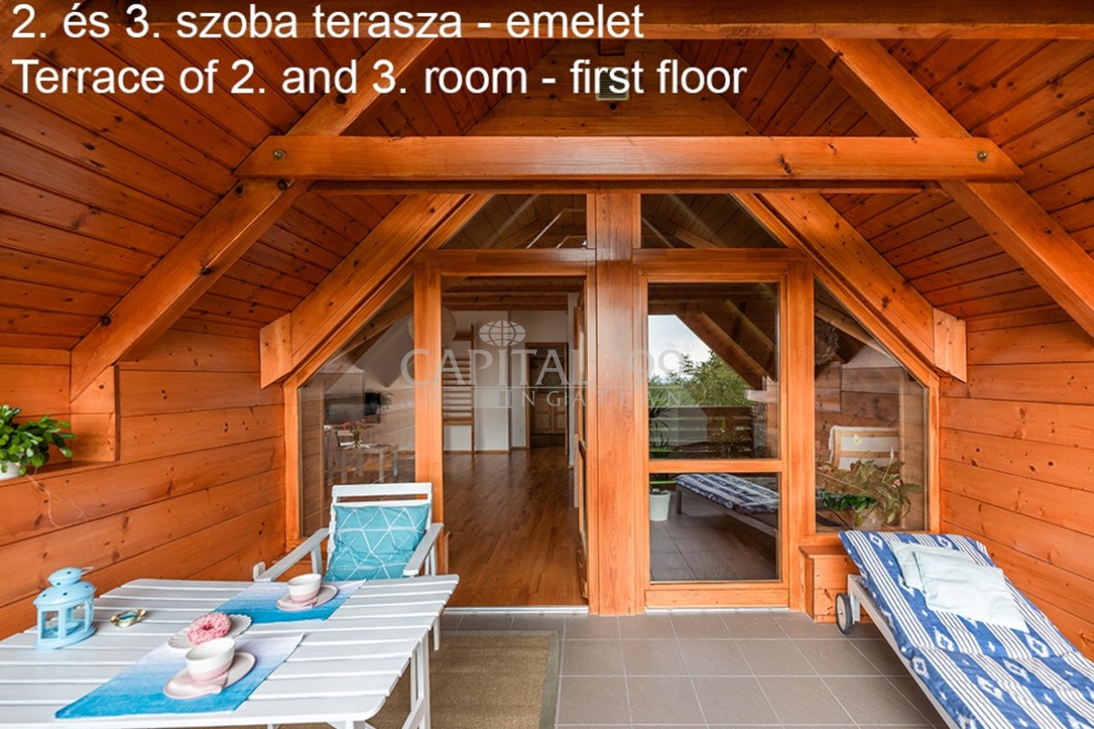 kódszám: 4355Nagyon igényesen megépített családi ház közvetlenül erdő mellett, a Balaton északi partján, Hévíz, Keszthely közelében. A házhoz dupla telek tartozik, ami nagyon szépen parkosított. A telken örökzöldek, gyümölcsfák megtalálhatóak. A tetőtéri teraszról szép panoráma nyílik a Balatonra. Érdemes megnézni, mivel különleges fekvésű, és minden igényt kielégítő családi házról van szó! A ház dupla telken található, 2 helyrajzi számon. A telken igény szerint további ház építhető. A családi ház egy átmenő forgalomtól mentes zsákutcában található! Ez valóban nem mindennapi ajánlat!