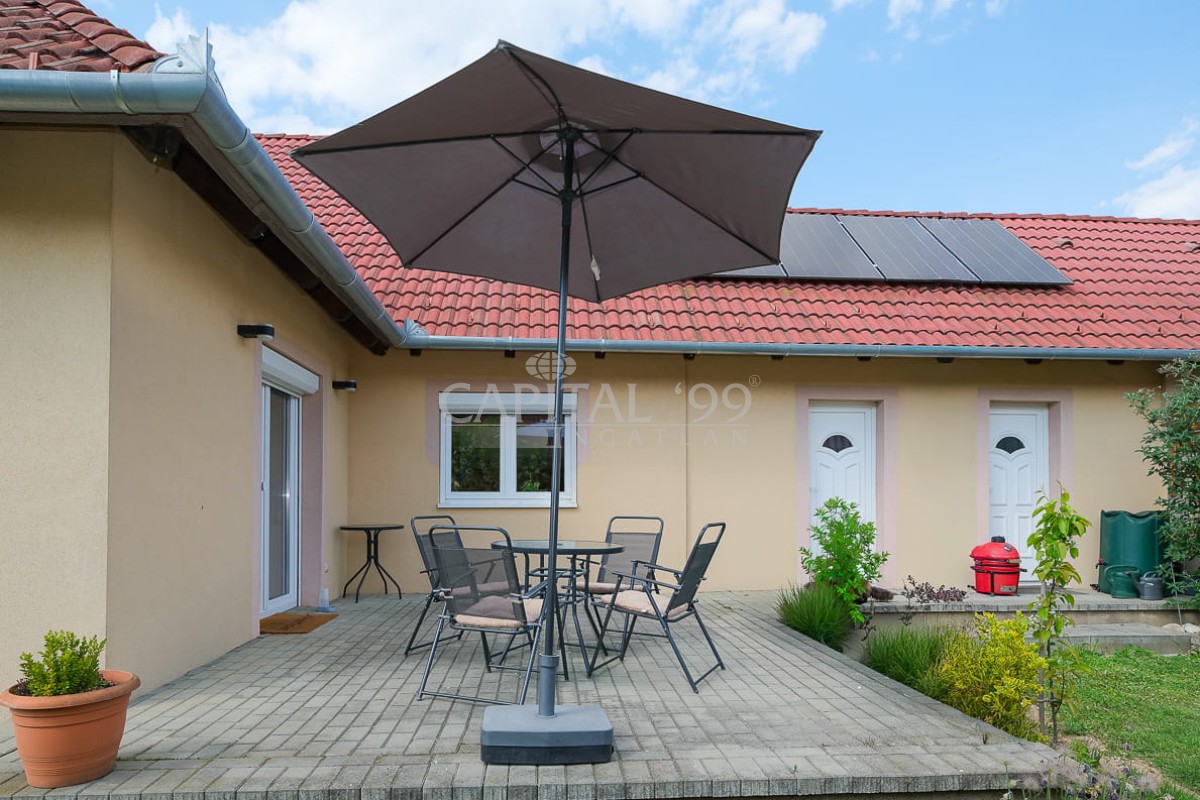 Az ingatlan energiaellátását egy 6 kW teljesítményű, hálózatra visszatápláló napelemes rendszer is támogatja, amely tovább növeli a gazdaságos üzemeltetést.