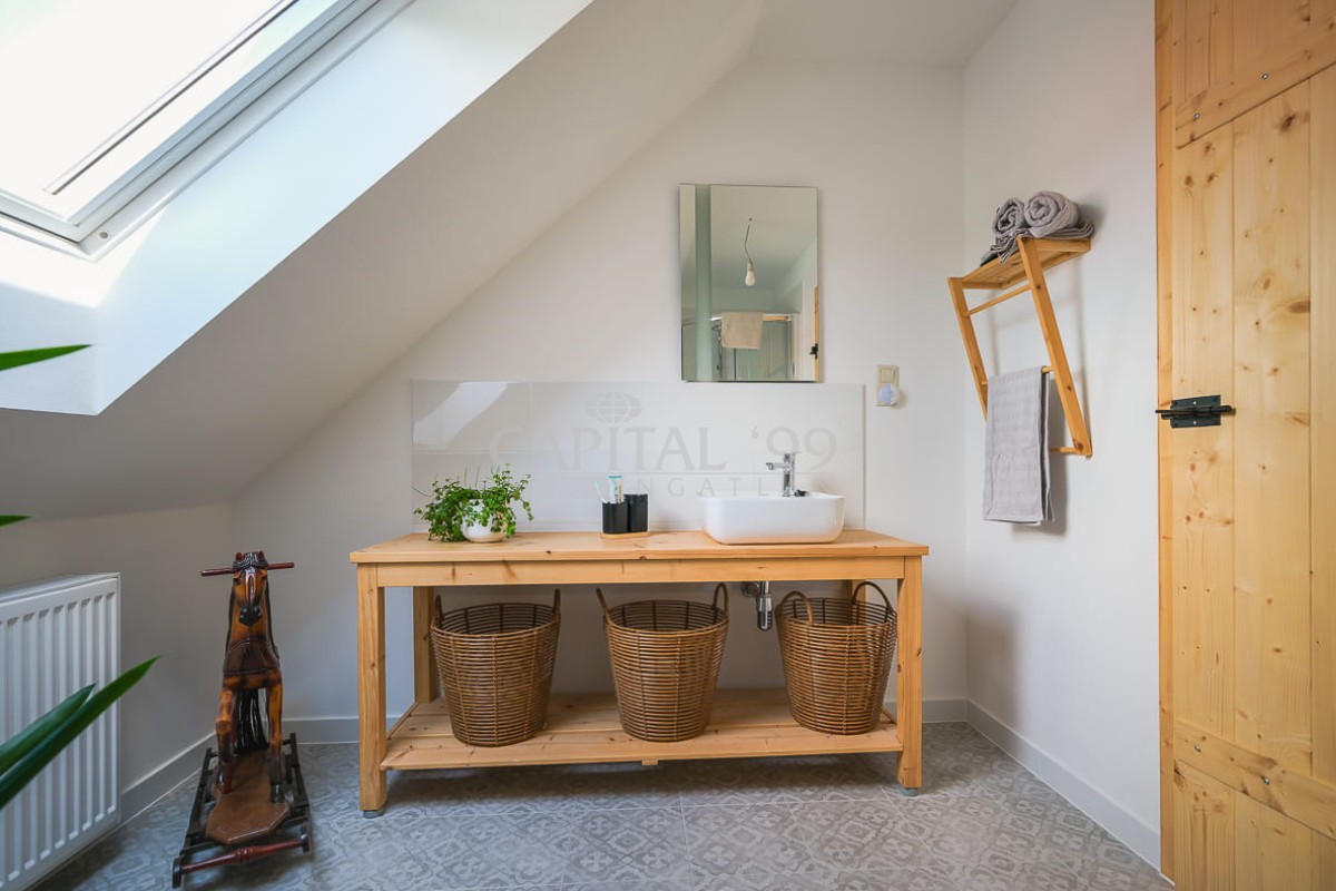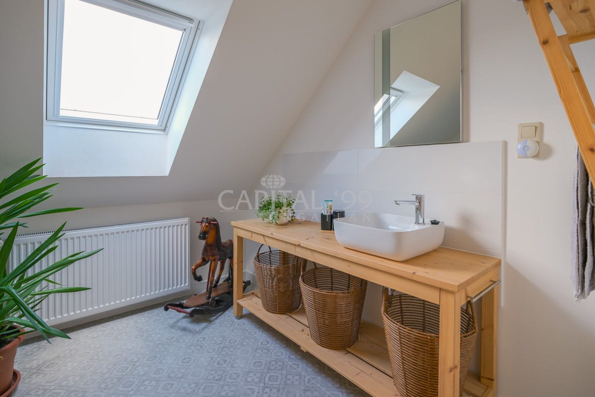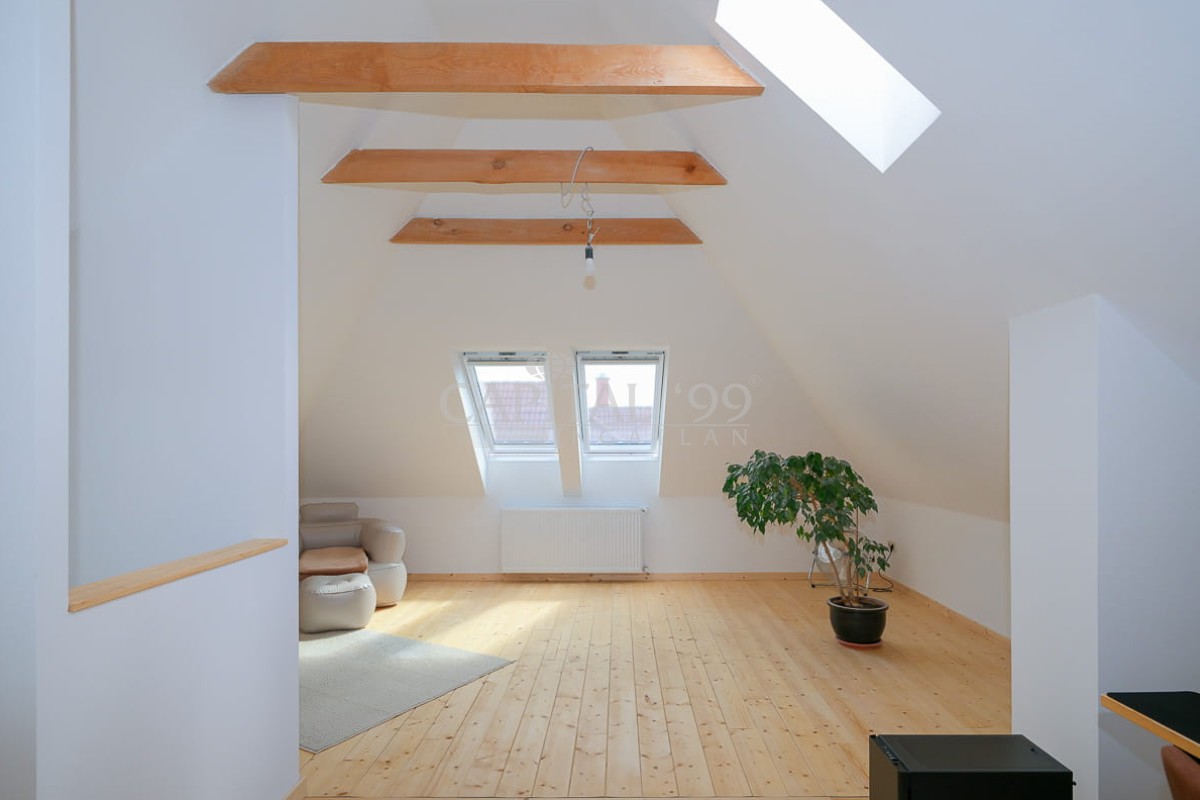 Tetőtér 60, 62 nm: nappali 33,43 nm, közlekedő 1,90 nm, fürdőszoba 8,06 nm, hálószoba 14,11 nm, gardrób 3,12 nm.