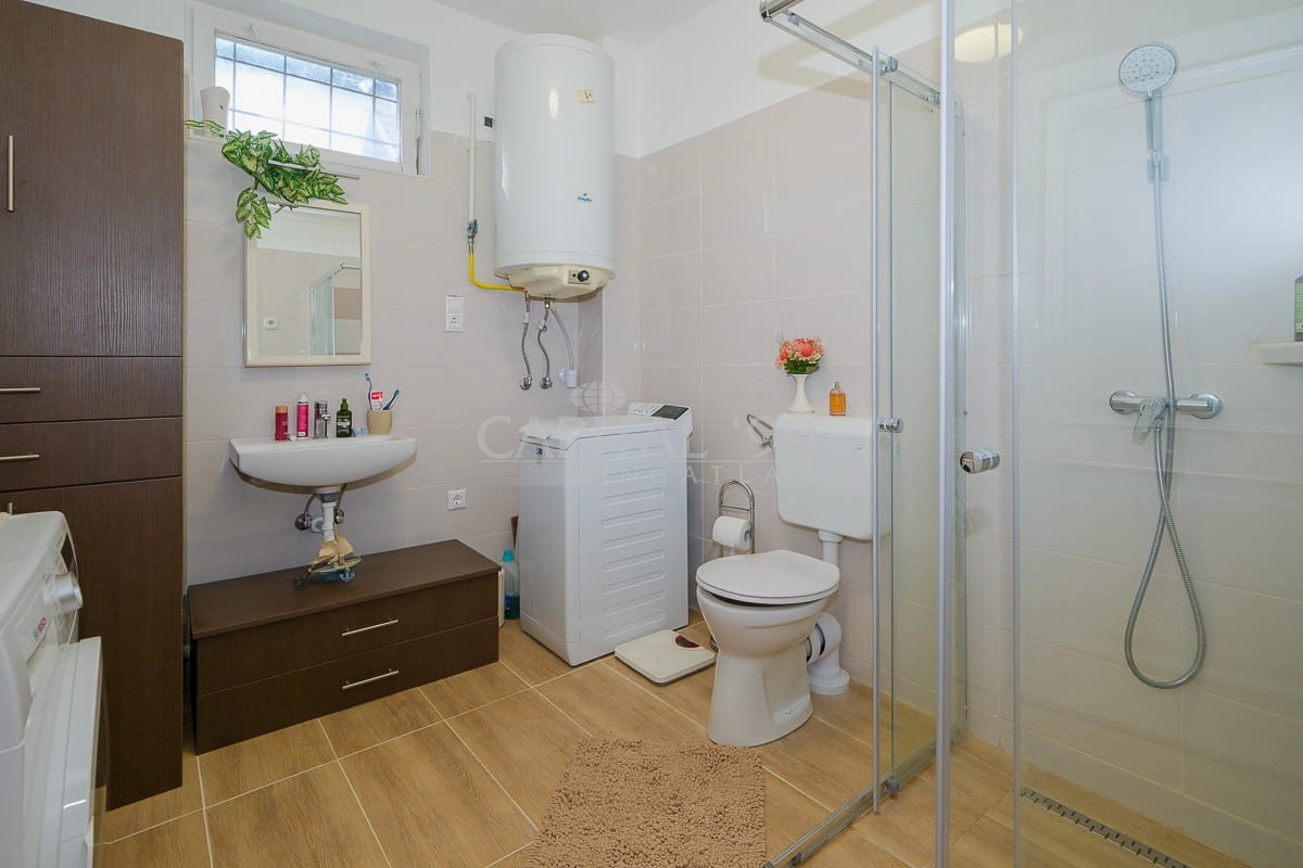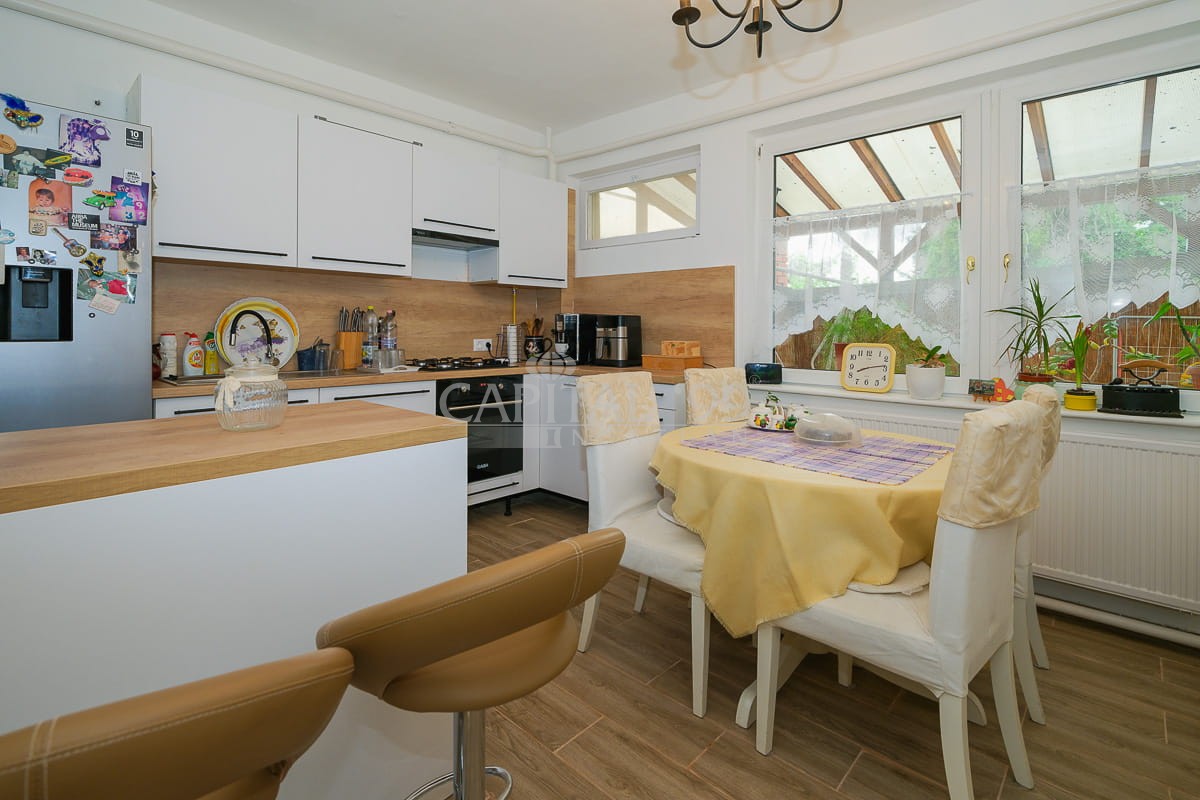 A felújítás során a földszinten korszerű, műanyag külső nyílászárók kerültek beépítésre hőszigetelt üvegezéssel, a helyiségek új burkolatot kaptak, valamint a fürdőszoba is megújult. A modern, új konyhabútor tovább növeli a lakótér komfortját és esztétikai értékét.