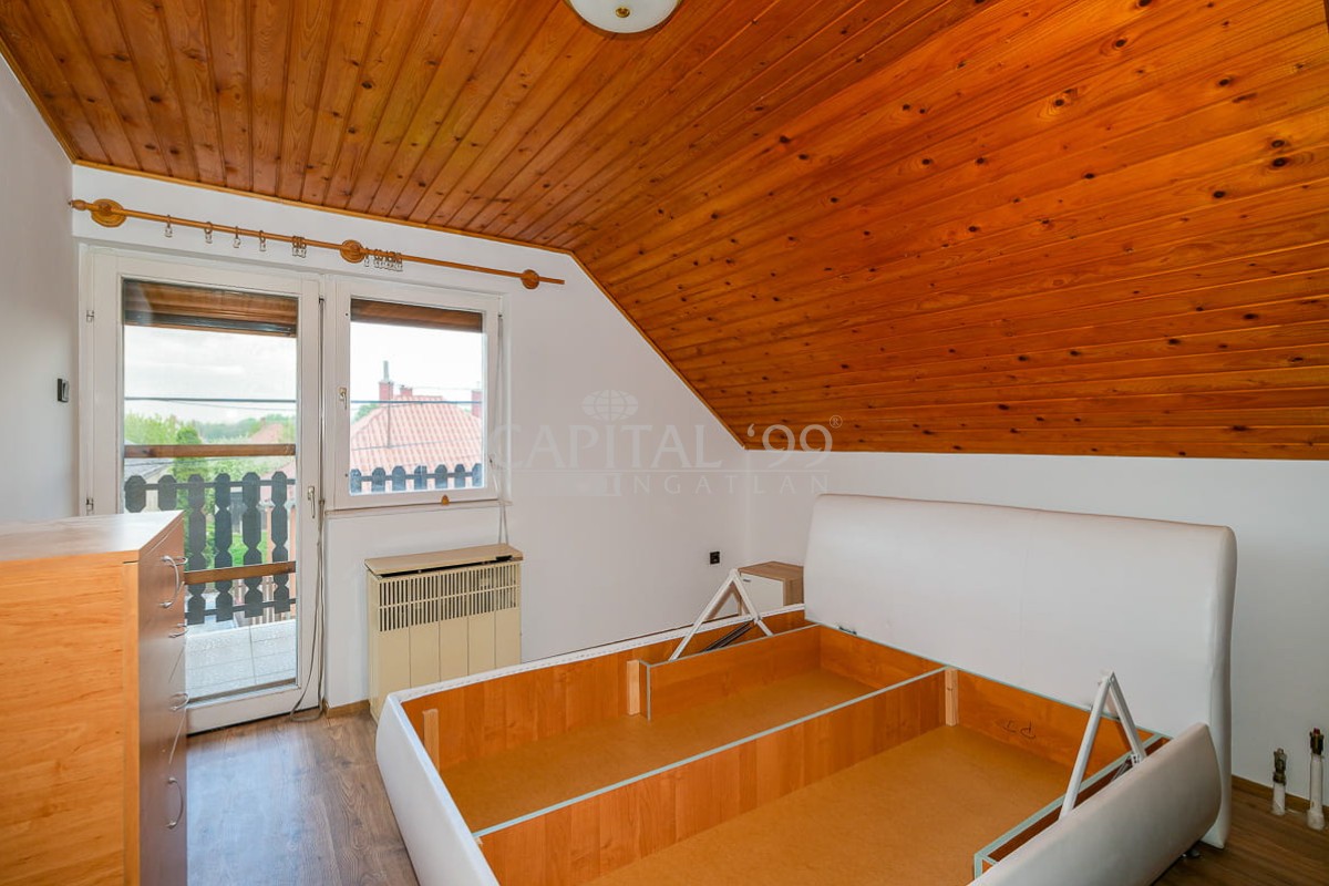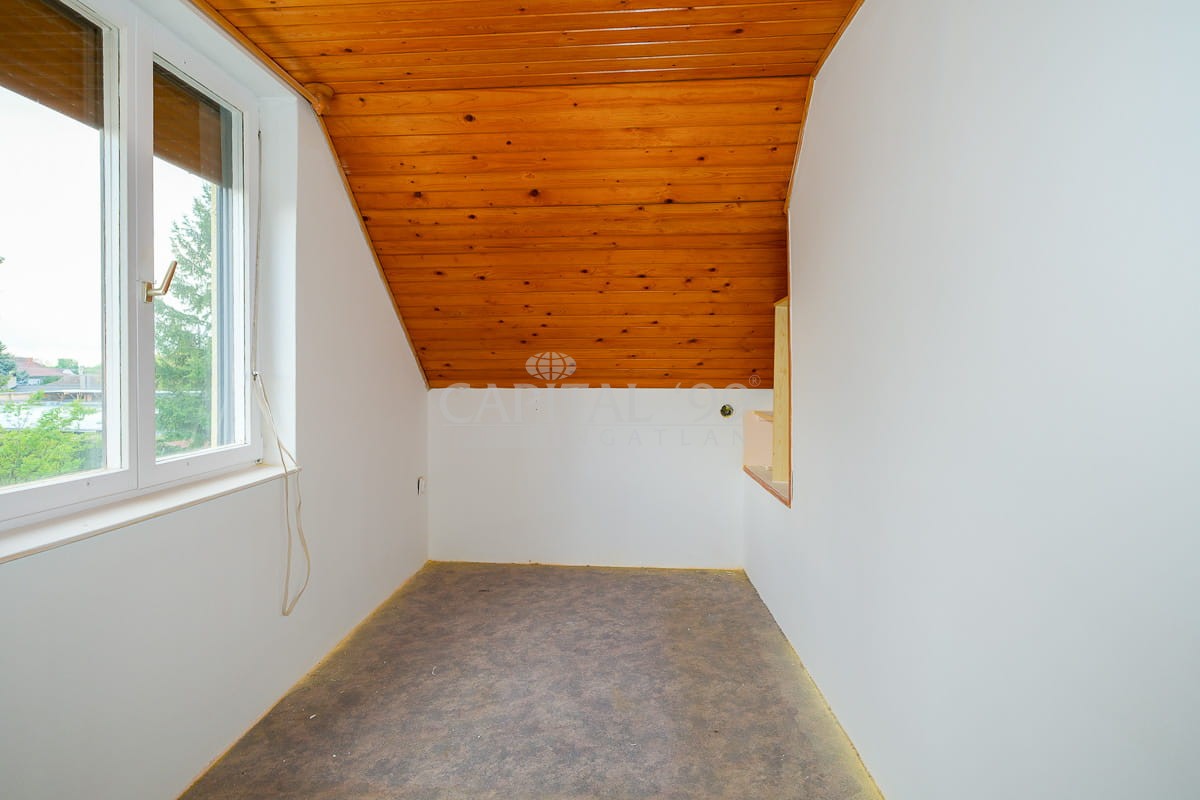 • Fa nyílászárók a tetőtérben, műanyag nyílászárók hőszigetelt üveggel, szúnyoghálóval és redőnnyel felszereltek a földszinten.